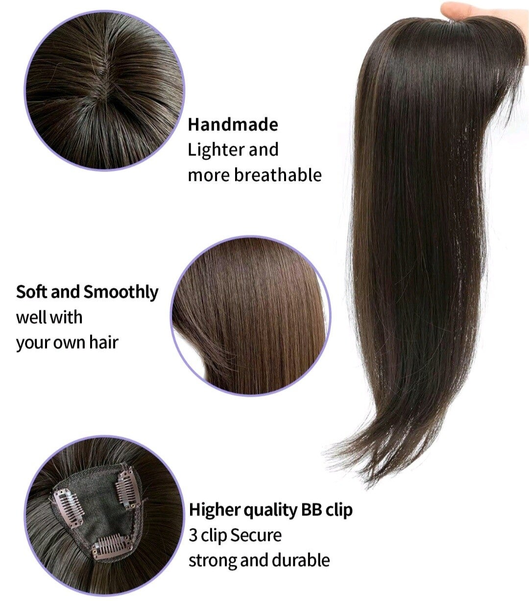 18-Inch Synthetic Hair Topper with 3 Clips – Natural Volume & Effortless Style