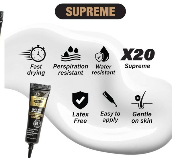 Secure your crown with confidence. The Wonder Lace Bond Supreme Adhesive Tube Pack delivers extreme firm hold in a sleek, travel-friendly size—perfect for flawless installs on the go. This professional-grade lace wig glue dries quickly, holds strong through humidity and perspiration, and remains gentle on sensitive skin with its latex-free, cruelty-free formula. Whether you're slaying a bold new look or touching up your edges, this glue keeps your lace laid with unmatched durability and comfort.