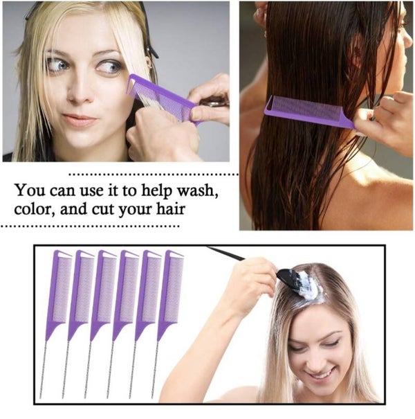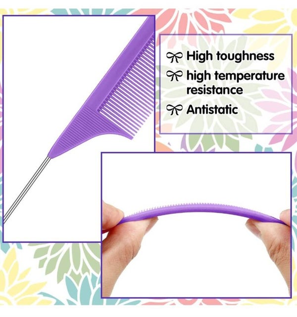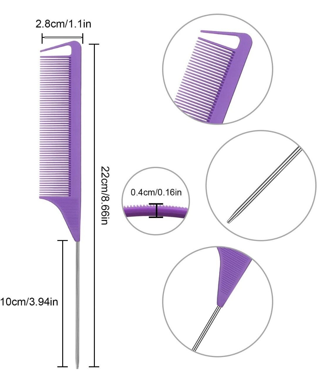Purple Stainless Steel Parting Rat Tail Comb – Heat Resistant, Anti-Static, Salon Quality