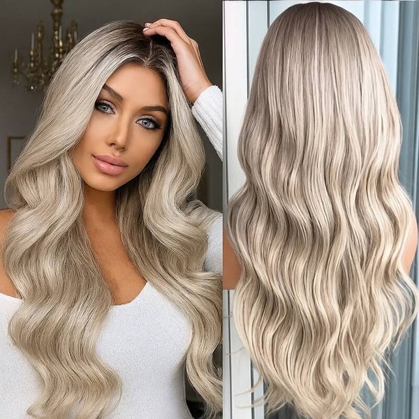 The color? A radiant platinum blonde kissed with natural lowlights for depth and dimension. The waves flow effortlessly, giving you that “just stepped out of a dream” look—voluminous, feminine, and unapologetically powerful.